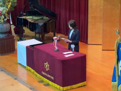 学校長式辞・PTA会長祝辞の様子です。