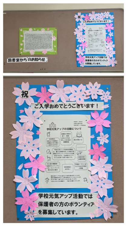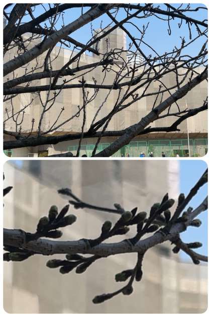 校庭の桜の蕾が膨らんできました。春到来です。元気アップの皆さんによる掲示物もスタンバイできました。