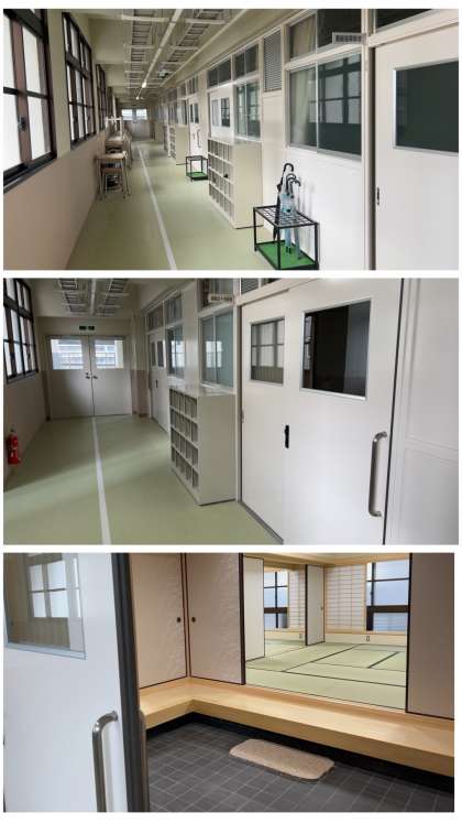 新校舎の2階に新和室が完成しました。これは、現在の本館4階の和室を令和8年度に普通教室に改修するために先に新設していただきました。ありがとうございました。令和7年度中に引越しを済ませ、生徒の茶道部とPTAの茶道部の皆さんには、2学期から新校舎の和室で活動していただく予定です。お楽しみにお待ちください。