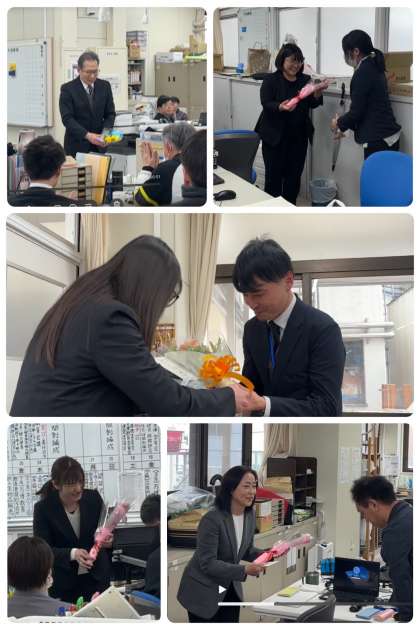 離任される教職員の皆さんとの離任式は、職員室で行いました。東中学校の教育活動の推進に多大なるご尽力いただきありがとうございました。新天地での活躍をお祈りしています。