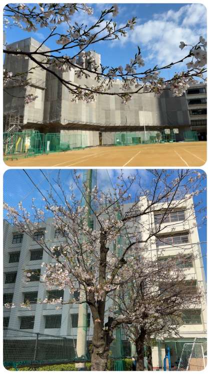 桜と校舎が、青空に映えます。