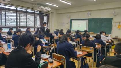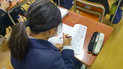 国語科の授業では、歴史的仮名遣いの確認をしながら、音読をがんばっていました。気になる表現には、資料集に書き込みをして覚えようとする姿がありました。