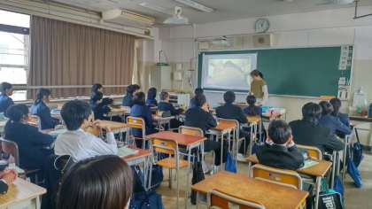 技術の授業では、映像を見ながら、コンピューター制御について学んでいました。