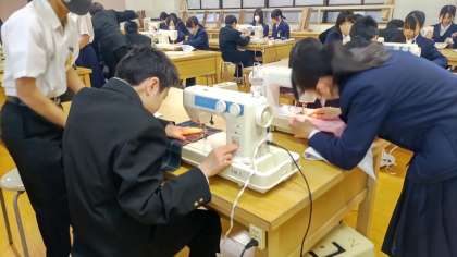 また家庭科の授業では、慣れないミシンに奮闘中!の姿が見られました。