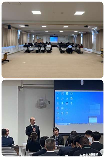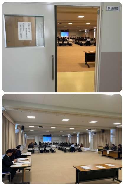 新校舎の6階多目的室で、大阪市中体連剣道部春季総体抽選会が行われました。会議の冒頭の挨拶で、剣道部長としスピーチされている校長先生は、もと本校剣道部顧問で教頭先生です。故郷に錦を飾るが如く、堂々とスピーチされていました。