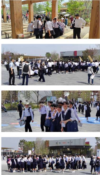 大回廊を闊歩したり、予約したパビリオンを見学したり、予約していないパビリオンを見学したり、それぞれに楽しんでいます。