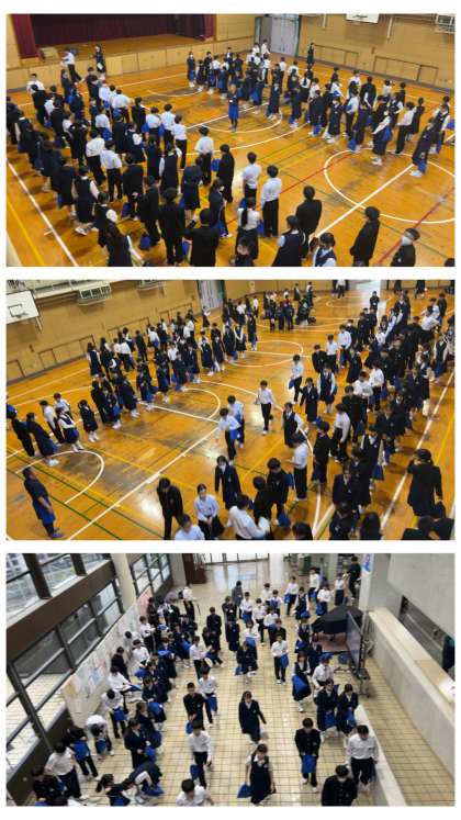 集会が終わった後には、雨降りでしたが、整然と教室に向かうことができました。