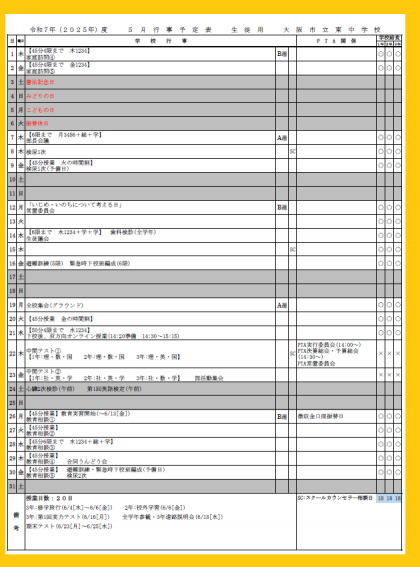 22木 中間テスト(1)PTA実行委員会(14〜)PTA決算総会・予算総会(14:30〜)PTA常置委員会(修正しています)