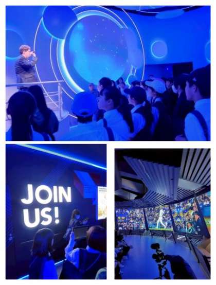 4月に出会った新しい仲間と一緒に有意義な時間を過ごすことができました。会場では、2クラス、もしくは3クラスごとに『アメリカ』パビリオンを見学し、アメリカのテクノロジー、宇宙開発、教育、文化を没入型展示などを体感しました。生徒たちは、ネイティブのガイドさんにも元気よく英語で受け答えする姿も見られました。