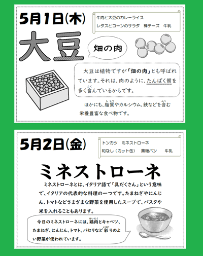 5月も、しっかりと給食をいただいて、健康の保持増進に努めましょう。