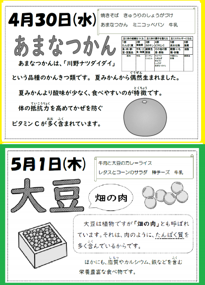 5月の献立表を再掲します。こちらをクリックするとご覧いただけます。