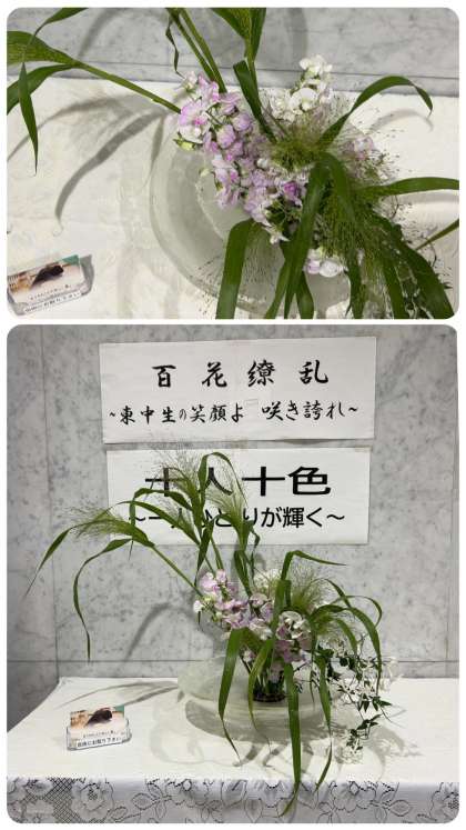 玄関のお花を生け替えていただきました。お題は『薫風・ジャスミンとともに』。お花は『宿根スイトピー・スモークグラス・ジャスミン』です。いつもありがとうございます。風薫る季節を迎え、新緑の色増す季節となりました。生徒の皆さんにとって、学習に部活動に、地域の活動に思いっきり取り組みやすい季節を迎えています。自分の可能性を絶好の季節です。
