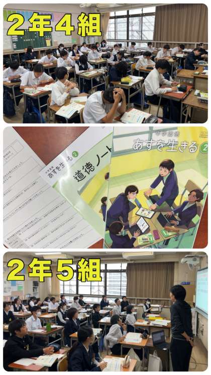 2年生の教室でも、共通の読み物教材を使って道徳の授業が進められています。先生の発問に対して、しっかり考えて、しっかり発言しています。