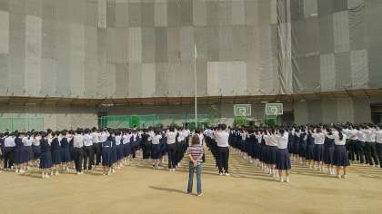 毎月最初の全校集会はグラウンドで行うことになっています。