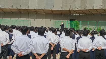 しかしながら、5月は12日が「いじめ・いのちについて考える日」として全校挙げて道徳の授業に取り組みましたので、今日が全校集会としては最初、ということで屋外で行うことになりました。
