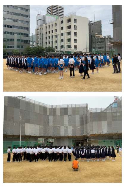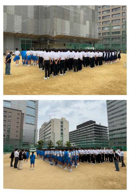 来週に迫った修学旅行。3年生は、広島平和記念公園で平和への祈りを込めて合唱をします。昨日は体育館で全体練習をし、今日は、本番を想定して、グランドで練習をしました。背中から聞こえてくる伴奏で、指揮者なく歌うという、難易度の高い合唱に挑みます。