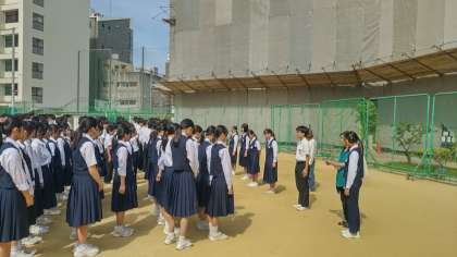 1時間目の時間帯に、3年生は修学旅行で行う平和セレモニーのリハーサルを行いました。