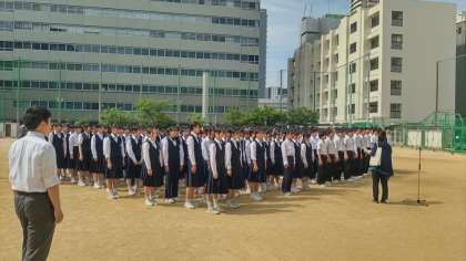 そこでは、修学旅行委員のクラス代表が仕切りをして、進めてくれました。生徒代表のあいさつの後には、各クラスからの平和宣言がありました。その後、戦没者に向けた黙とうをささげ、最後に平和を希求する思いを込めて合唱曲「世界を変えるために」を披露します。