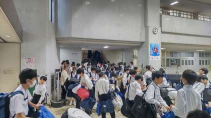 集会が終了すると、荷物を教室に持ってあがりました。雨天のため大きなかばんは置いたままにして下校します。明日は第二かばんをもって、身軽に登校しましょう。