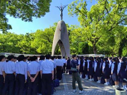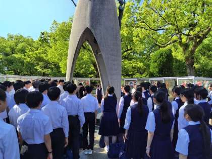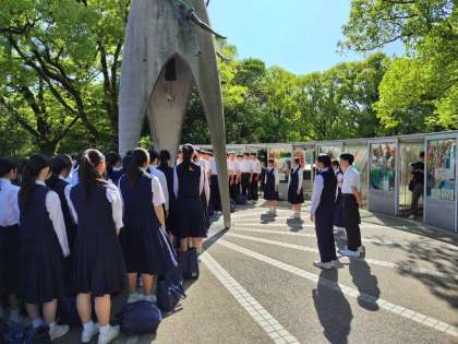 全体としてのメッセージに続いて、各クラス代表のメッセージ、黙とう、合唱と行われました。