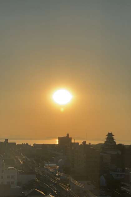 快晴の朝を迎えました。5時前の日の出は、神々しい光を地球に照らしています。