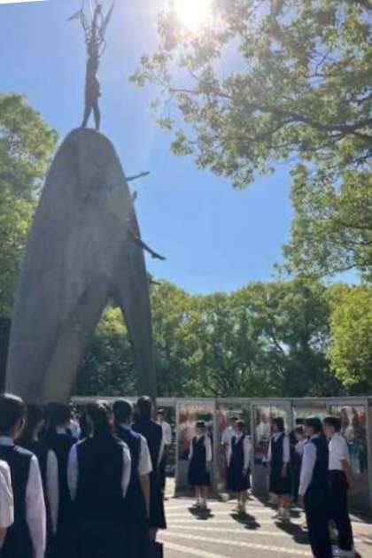 私たちは今日こでへ来るまで、平和の大切きや広島の原爆投下後の街並みなどたくさんのことを学んできました。私は一度この場所に来たことがありますが、何回来ても当時の状況が目に浮かび、悲痛な気持ちになります。今、平和な日々を送れていることに感謝して一日一日を大切にしたいと思います。これからも平和についてもっと考えていかなければならないと思いました。