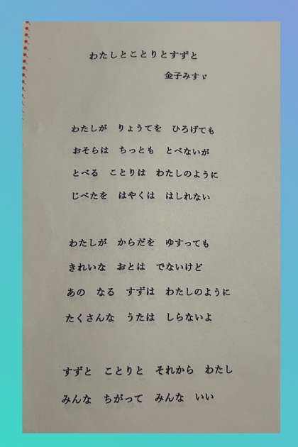 ご講演いただいた先生から金子みすゞさんの『詩』をプレゼントしていただきました。