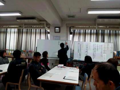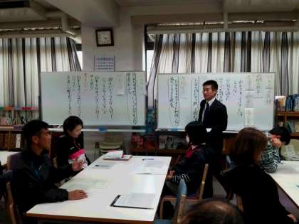 西垣先生が先生役となり、授業を進めていきます。生徒に授業を行うように、きちんと筋に沿って組み立てていきます。生徒役の先生も授業をしっかり受け、考え、当てられたら真剣に答えていきます。質問の仕方や、生徒の答えにどのようなものが出てくるかなど、多岐にわたり考え討議をしました。