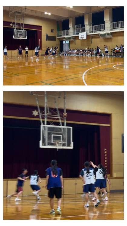 写真は、女子バスケットボール部の練習試合の様子です。しばらく見ない間に、スピードとともに、シュートの精度が上がっていました。特にスリーポイントシュートがら次々と入っていました。これまでの練習の成果でしょう。さらなる上達が楽しみです。