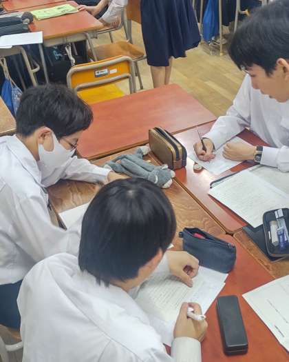 「拝啓からかくんだよね」「またおじゃましたいですって漢字だとどう書くのかな」など、周りの生徒や先生方に確認しながら進んでいきます。最後には気持ちのこもった素敵なお礼状ができあがりました。