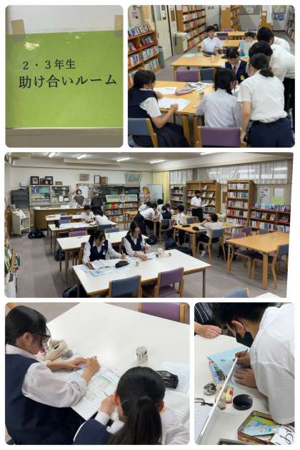 期末テスト前の自主学習会が開催されています。元気アップのスタッフの皆さんによる学習会。図書室と2つの学習室の3箇所での開催。スタッフの皆さまいつもありがとうございます。参加した生徒の皆さん、ここでの学びが家庭学習につながりますように!!