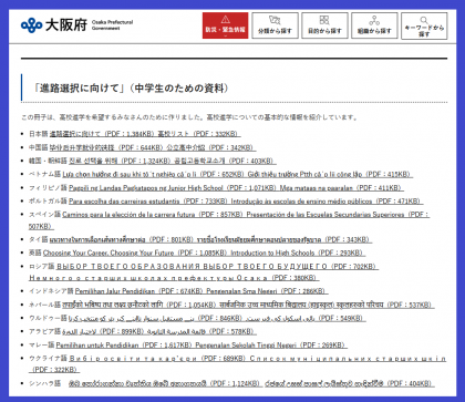 進路選択に向けて/大阪府(おおさかふ)ホームページから引用します。 [Osaka Prefectural Government]↓↓