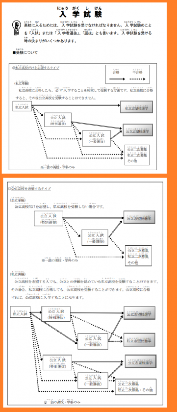 この冊子は、高校進学を希望するみなさんのために作りました。高校進学についての基本的な情報を紹介しています。必要に応じて利活用してください。また、ご必要とされる方へ、ご紹介くだされば幸いです。