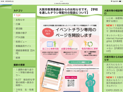 ・大阪市教育委員会からのお知らせです。【学校を通したチラシ等配付の取扱について】