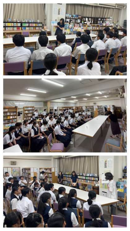 元気アップ主催の『お話の会』が開催されました。30脚のイスを用意していましたが、続々集まる生徒に、立ち見が出るほどの大盛況となり、最終的には70人もの生徒たちが図書室に集まりました。次回は7月14日(月)13時15分から30分程度の予定です。懇談までの待ち時間、部活動までの時間など、奮って参加してください。