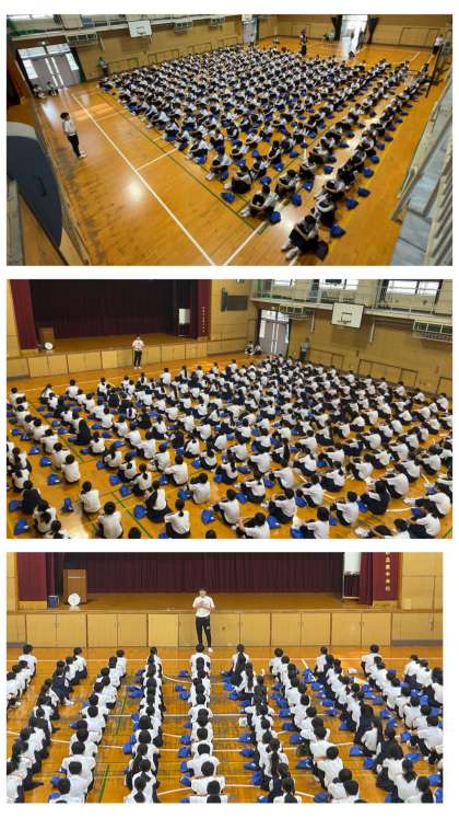 毎週水曜日の朝に行ってきた1年生の定例の集会も1学期.、残り2回となりました。入学式から3ヶ月が経ち、お互いのことも分かり合えてきたことでしょう。教室での授業では、先生方の創意工夫された授業に集中して取り組んでいます。1年生が、集会で話のあった夏休みの過ごし方のポイントを心に留めて、さらに成長することが楽しみです。