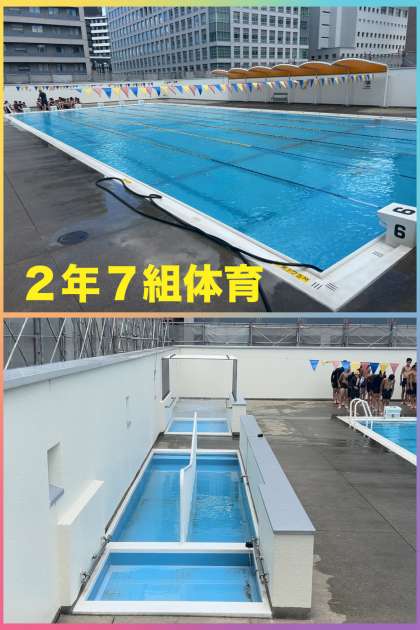 空調の効いた教室では、生徒たちが落ち着いて授業に挑んでいます。また、プールの水温は33度とのこと。生徒たちは授業の最後のシャワーの水がとても気持ちよさそうでした(水泳の授業は、プールのみ写しました)。
