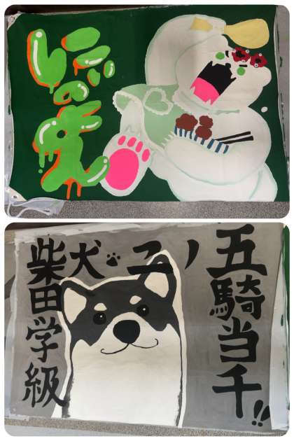 2年生の学級旗が完成しました。デザインの決定、生地への下書き(プロジェクターを使って)、色付け。少数精鋭で取り組んでいたので短期間で完成しました。9月12日(金)の体育大会では、開会式、応援などで活躍することでしょう。また、10月31日(金)の文化発表会では、玄関ホールに掲出されることでしょう。