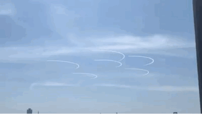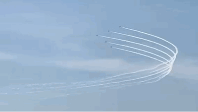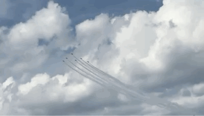 昨日今日と3時ごろに、6機のブルーインパルスによる展示飛行が行われ、夏の青空に様々な模様が描き出されました。