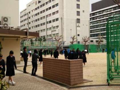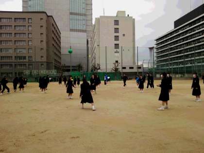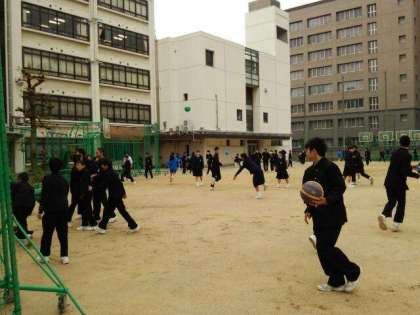 今日の昼休み、外はかなり冷えており5・6℃ぐらいでした。直前まではみぞれが降っていたのですが、生徒たちの熱気で暖められたようで小雨に変わっていました。先生たちもこの様子を見守っています。