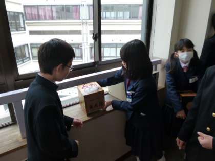 今日の全校集会でのお披露目の後、旧生徒会役員によって生徒一人一人の意見を聞くための意見箱が設置されました。