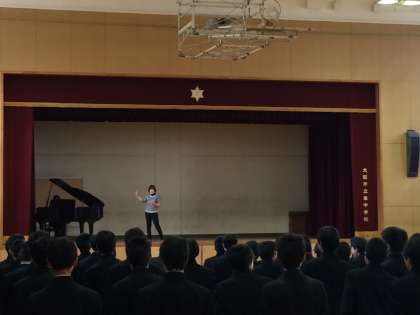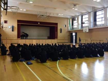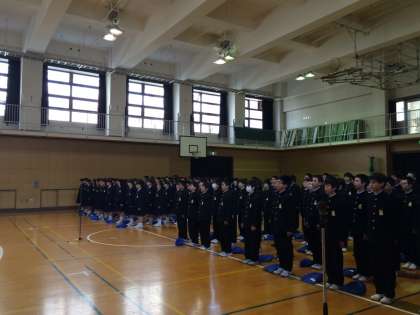 5限目に1、2年生が入れ替わりで体育館にて、金曜日に行われる予餞会の練習を行いました。瀧口先生の熱のこもった指導のもと、1年生も2年生も緊張感のある中で合唱と動きの確認をしていました。お世話になった3年生へ、想いを一つに頑張りましょう!