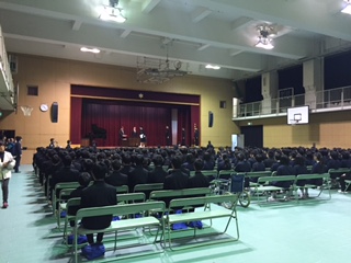 卒業生も在校生も明後日の本番と同じ流れで予行を行います。