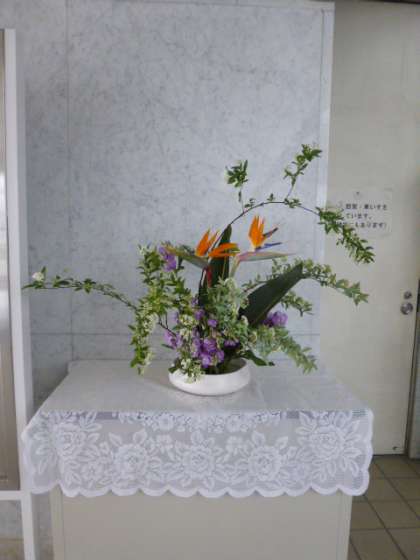 美しく、そしてとても立派に生けてくださいました。2匹の鳥が、明日卒業の3年生の門出を祝ってくれているかのようですね。いつもご支援をいただきまして本当にありがとうございます。