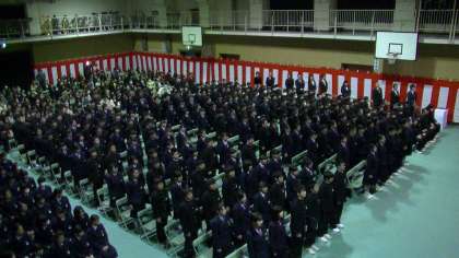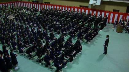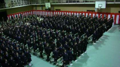 謝恩の歌「仰げば尊し」、送別の歌「蛍の光」を歌いました。