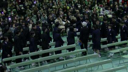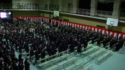 退場の様子です。厳粛な中、卒業生の想いがあふれた式でした。みなさんの晴れ晴れとした表情が印象的でした。