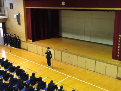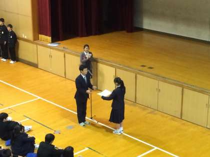 表彰の後、校長先生からお話がありました。次の学年へステップアップしていくために、残りの3学期をどう過ごすかが大切です。卒業生が残した伝統を引き継いで、気持ちを新たに取り組んでいきましょう!