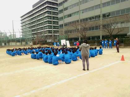 3年生が卒業して人が減った運動場。しかし、1年生、2年生がそれを埋めるように遊んでいます。今日は2年生の球技大会。早くやりたい気持ちで一杯の生徒たちは、もう整列をはじめています。