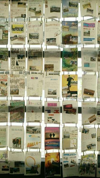 さて、東中ホールには新3年生の皆さんが作成した、学校・部活動を紹介したポスターが掲示されています。新入生の皆さんは昨日観ましたか?