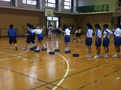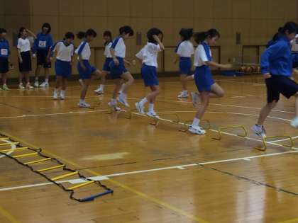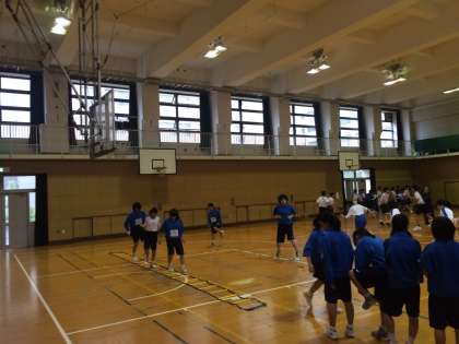 続いて女子バスケットボール部の様子です。いろんな器具を使ったトレーニングを行っていました。先輩に混ざって1年生も一生懸命取り組んでいました。